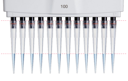✅ 吸头浸没深度:吸头尽量浸没得浅一些,防止液体残留在吸头表面;但是同时要浸没得足够深,防止吸取空气。