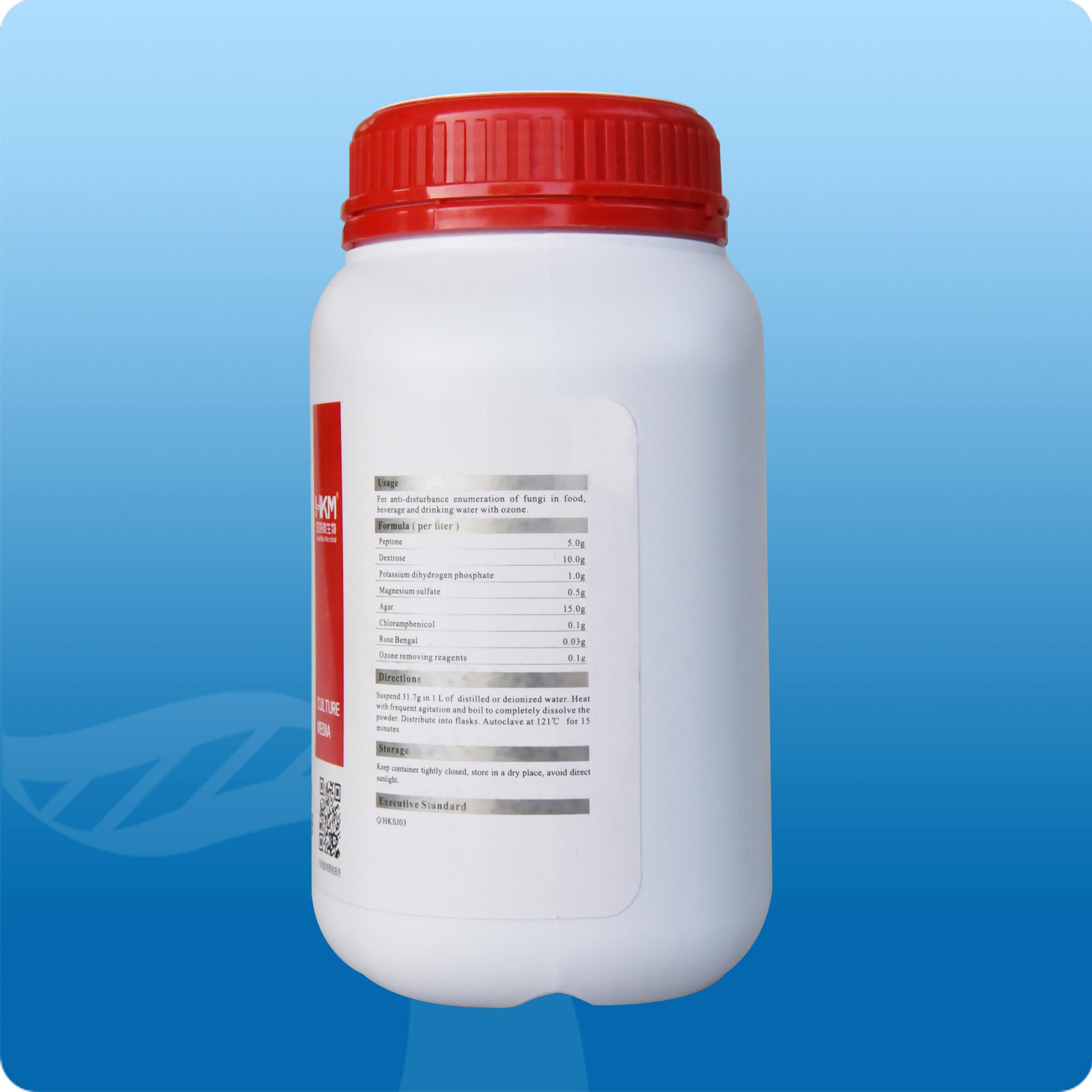 蛋白胨提供碳源和氮源;葡萄糖提供能源;磷酸二氢钾为缓冲剂;硫酸镁提供必须的微量元素;琼脂是培养基的凝固剂;氯霉素可抑制细菌的生长;孟加拉红作为选择性抑菌剂可抑制细菌的生长,并可减缓某些霉菌因生长过快而导致菌落漫延生长;臭氧解抑剂可消除10.0mg/L臭氧或余氯的干扰。