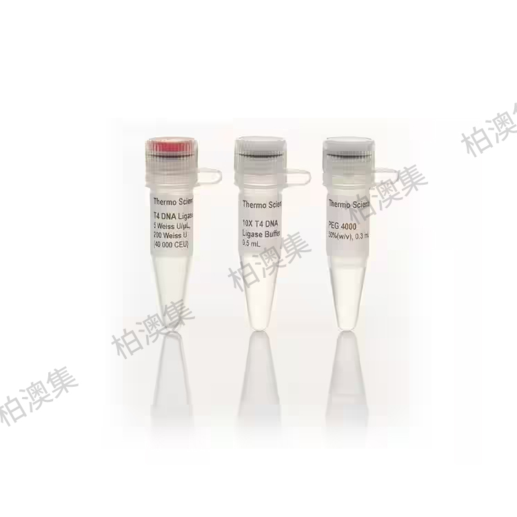 Thermo Scientific T4 DNA 连接酶催化双螺旋 DNA 或 RNA 中并排的 5-磷酸基和 3-羟基端之间磷酸二酯键的形成。该酶可以修复双螺旋 DNA、RNA 或 DNA/RNA 杂合体中的单链缺口。其还可以将 DNA 片段与黏性末端或平末端结合,但对单链核酸无活性。