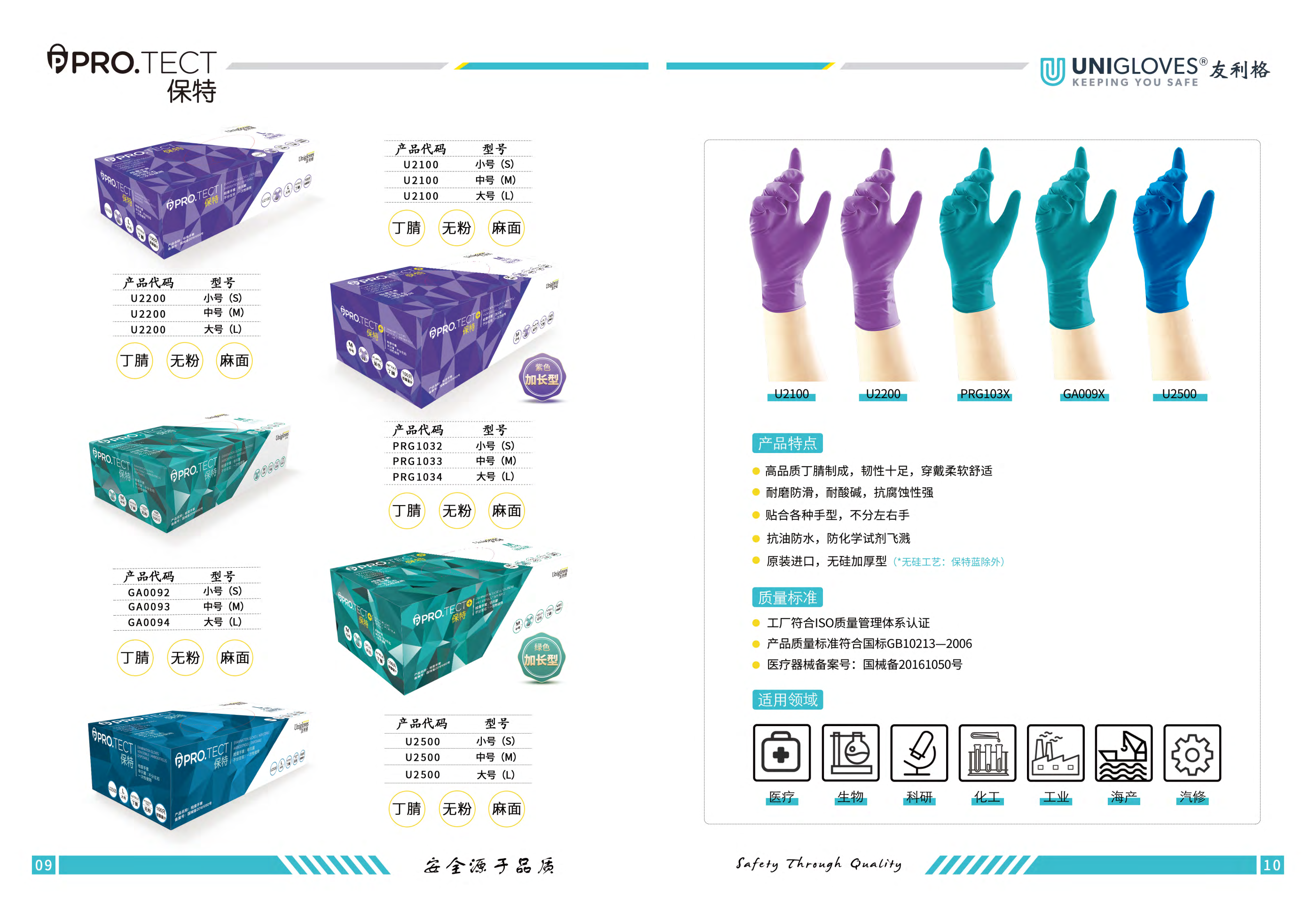 友利格   U2500-M   PROTECT 保特蓝色丁腈手套M号