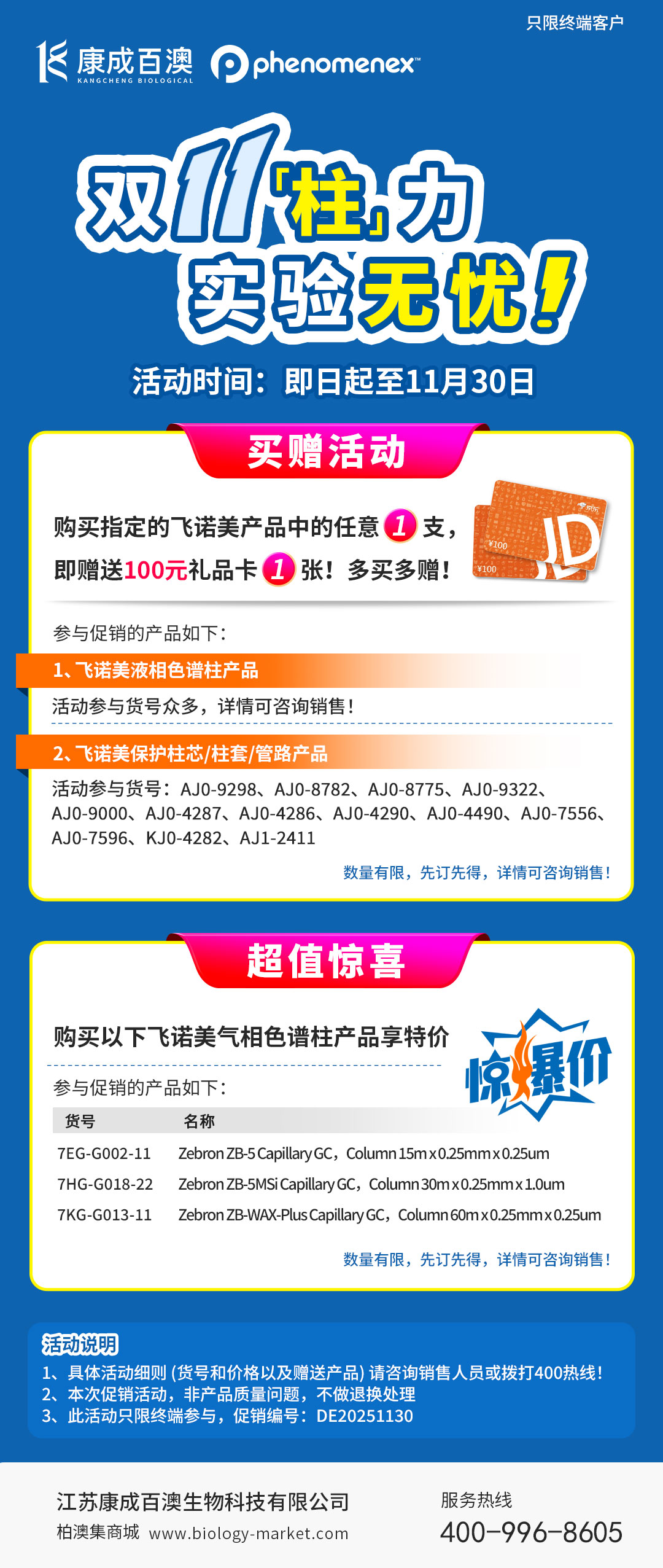 【双十一终端促销】艾杰尔:满额送礼 + 特价柱,飞诺美:买 1 支送 100 元卡