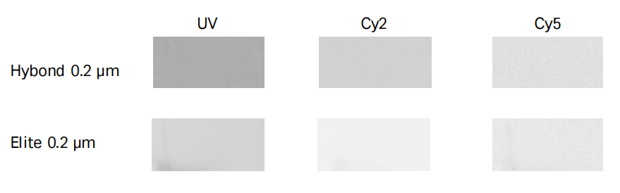 图2. Hybond和Elite转印膜在不同通道的背景信号