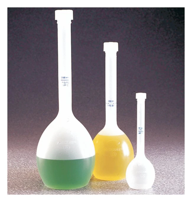 Thermo Scientific™ Nalgene™ B 级聚丙烯共聚物容量瓶与玻璃容量瓶相比重量较轻,带盖,具有出色的耐化学腐蚀性,并经校准可在 20°C (68°F) 下用于“盛装”和“输送”。