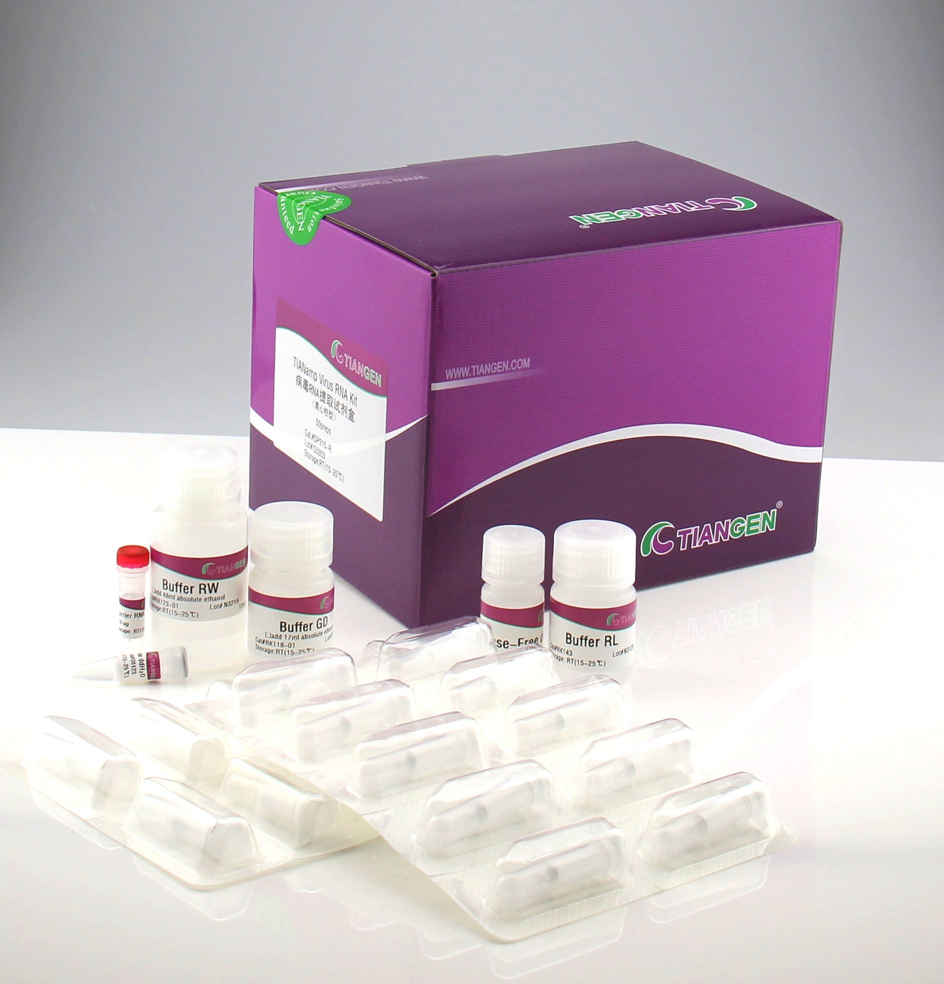 TIANamp Virus RNA Kit 采用离心吸附柱和缓冲系统,适合从血浆、血清和其它无细胞体液等样品中分离纯化病毒的RNA,本试剂盒特别加入了Carrier RNA,可以从体系中轻松捕获微量RNA,具有方便快捷、产量高、重复性好的特点。所得病毒RNA 无蛋白、核酸酶或其它杂质的污染,可直接用于PCR、酶切、杂交、反转录等分子生物学实验。本试剂盒操作简单、快速,1 h 内即可获得高纯度RNA。 用于各种病毒RNA 提取。