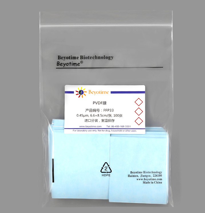 碧云天的PVDF膜(进口分装, 6.6×8.5cm, 0.45μm)是一种预裁切的尺寸为6.6×8.5cm、孔径为0.45μm的聚偏二氟乙烯