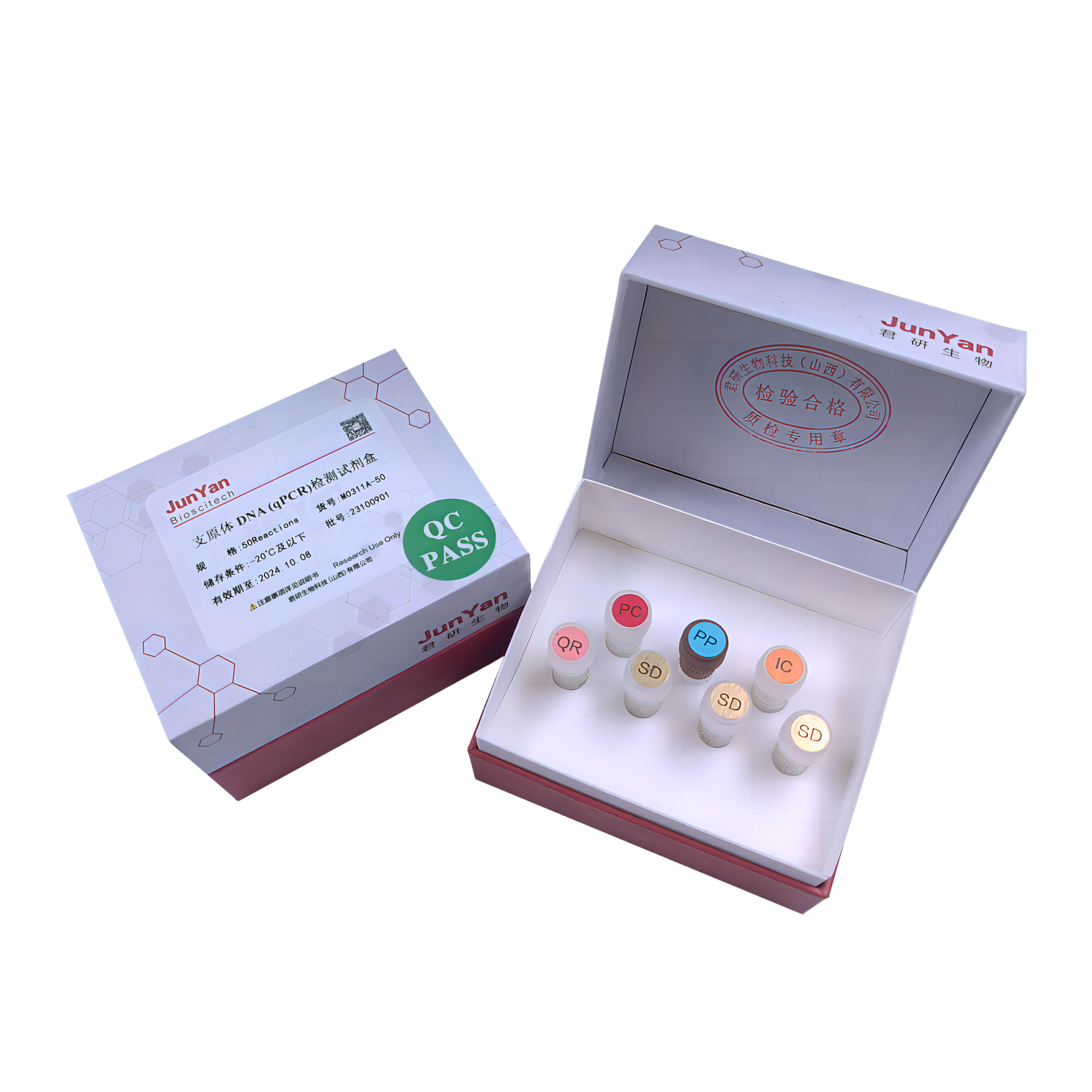 君研生物自主研发的支原体 DNA(qPCR)检测试剂盒专一性强,灵敏度高,可用于定性检测主细胞库、工作细胞库、病毒种子批、对照细胞以及临床治疗用细胞中是否存在支原体污染,可与君研生物“宿主细胞残留 DNA(磁珠法)样本前处理试剂盒”以及全自动核酸提取仪配套使用。本试剂盒的优势在于可覆盖 150 多种支原体检测,检测限、精密度、耐用性好、专属性强。